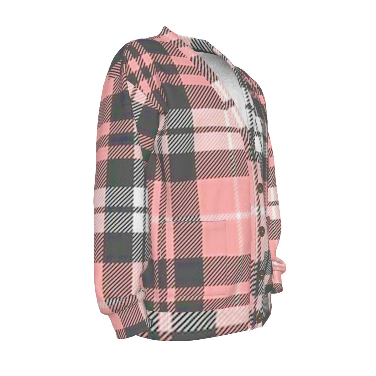 All-Over Print Unisex V-neck Knitted Fleece Cardigan With Button Closure