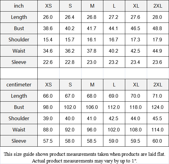 This size guide shows product measurements taken when products are laid flat. Actual product measurements may vary by up to 1".
