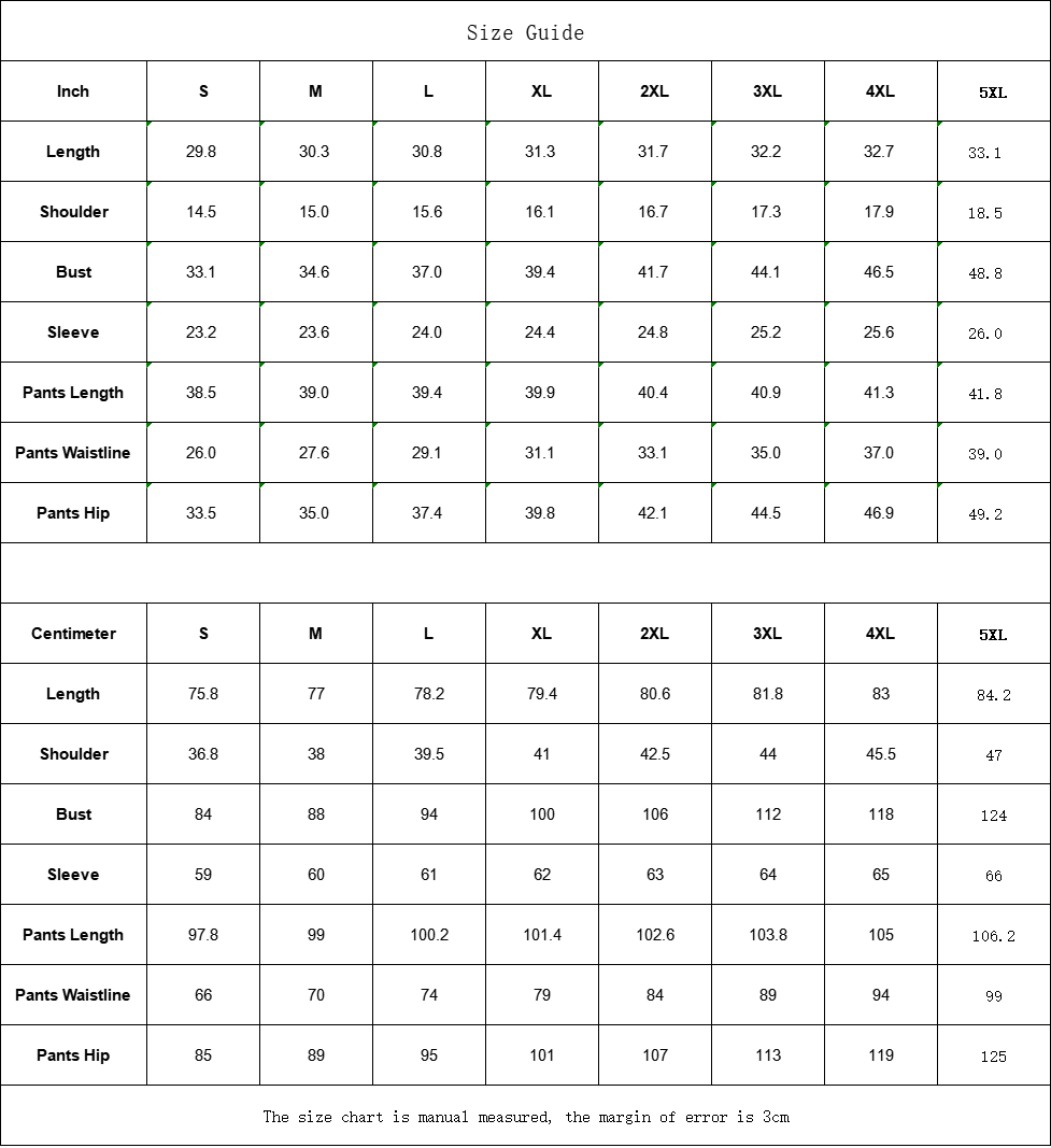 | Centimeter | S | M | L | XL | 2XL | 3XL | 4XL | 5XL |